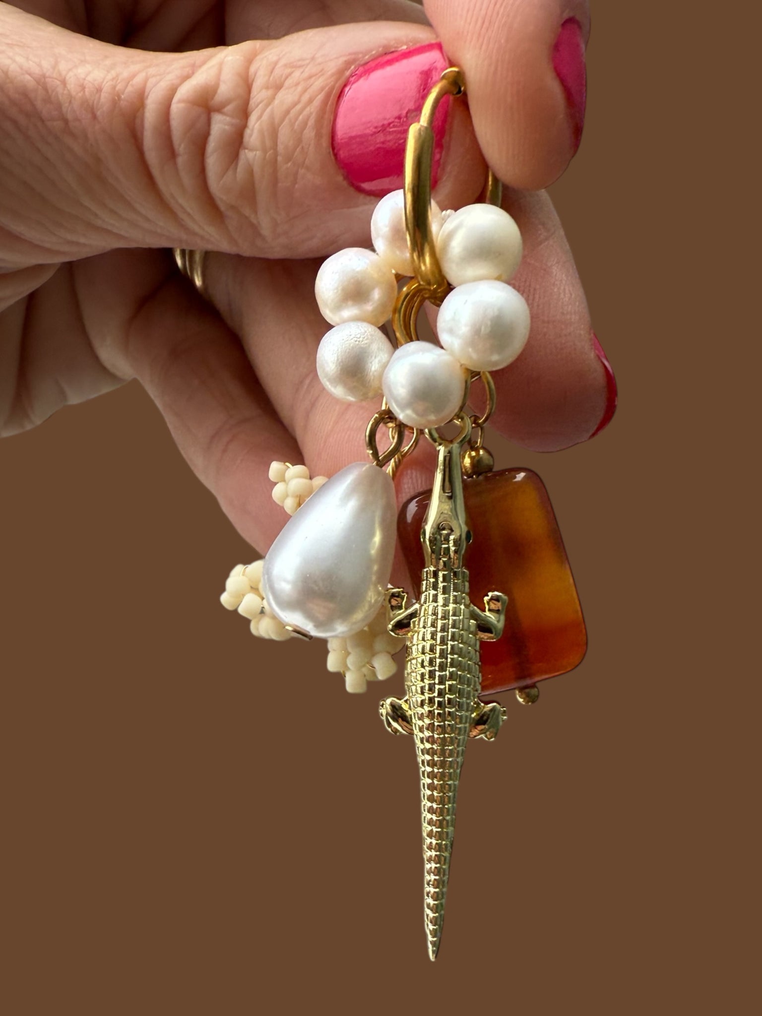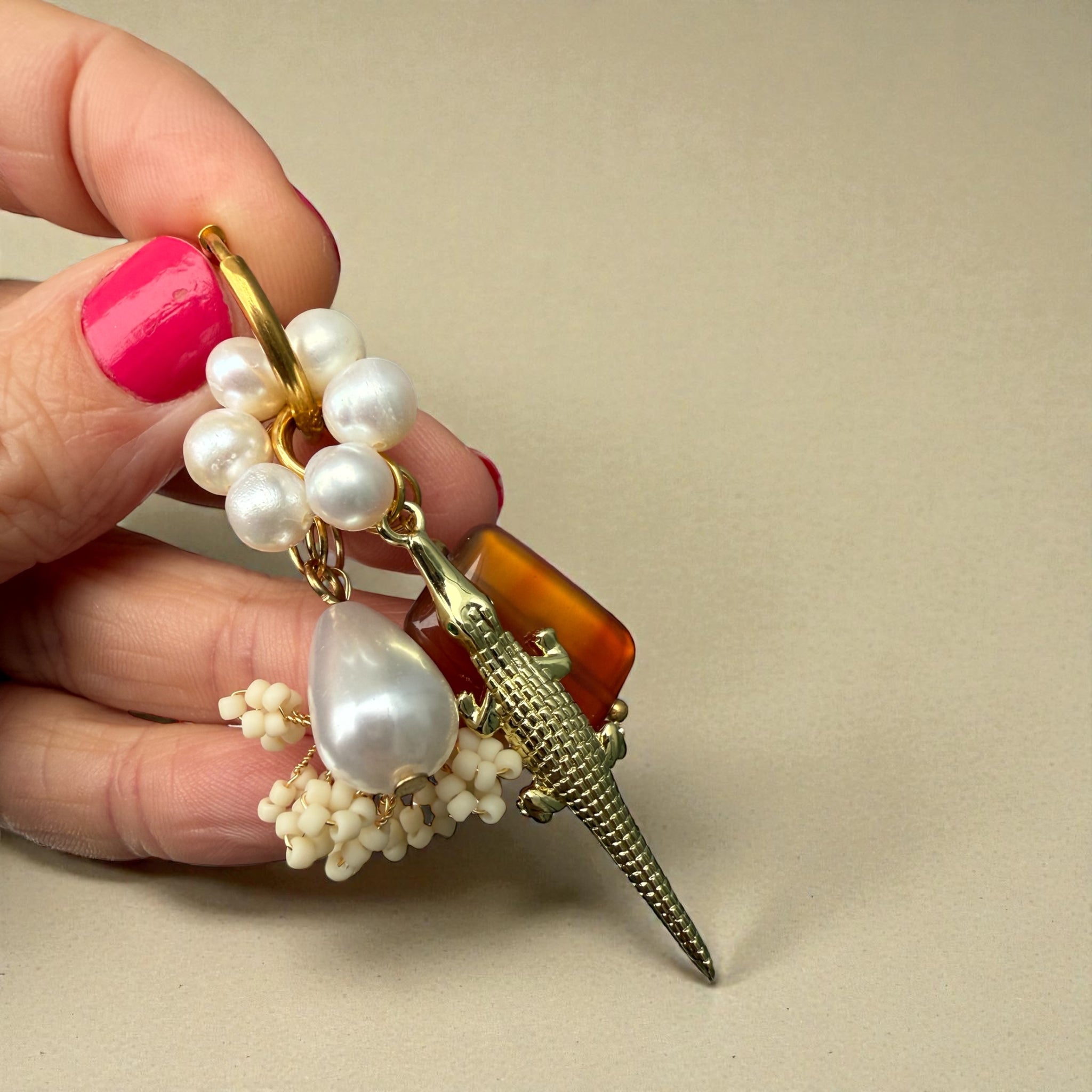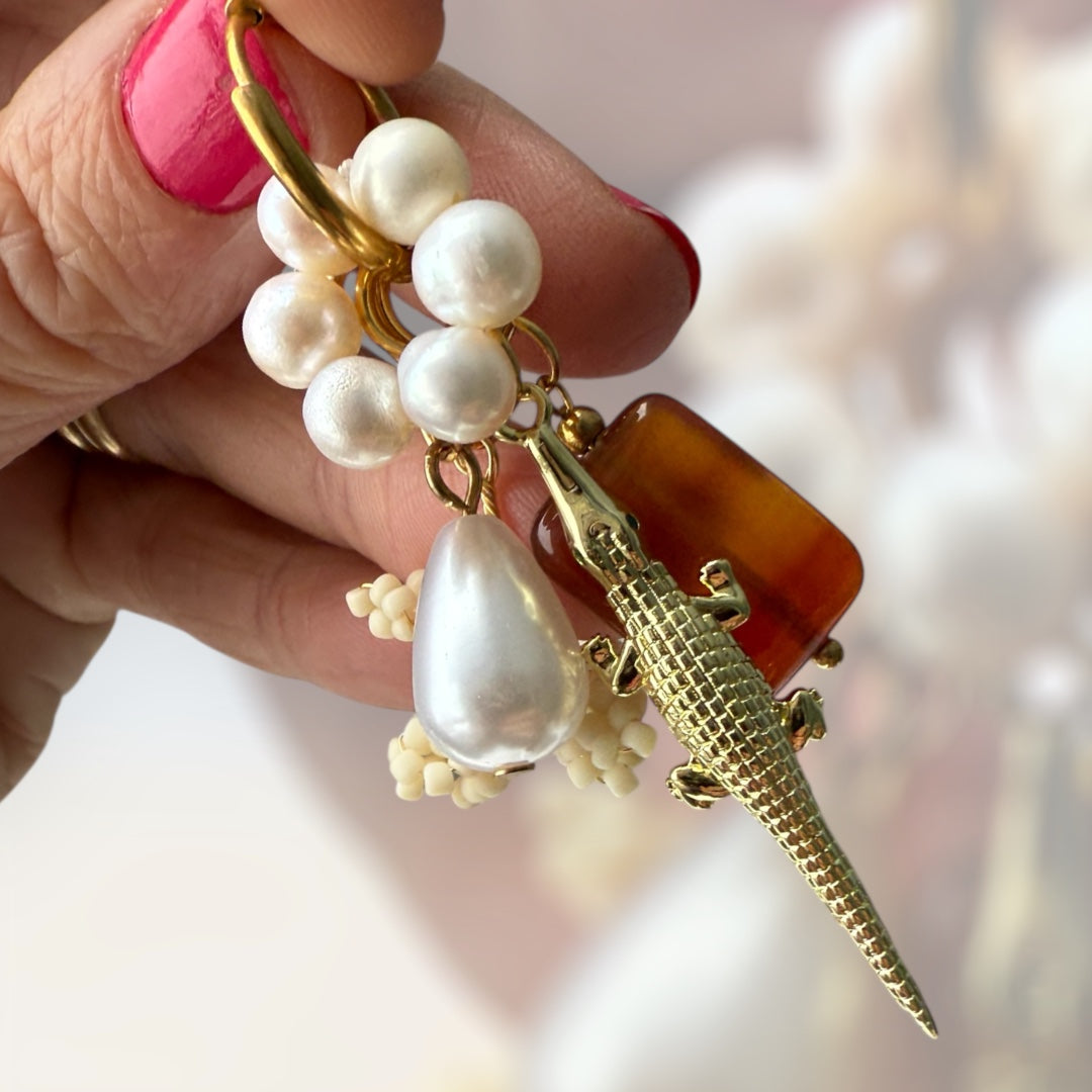 Oorbel krokodil parel Mar